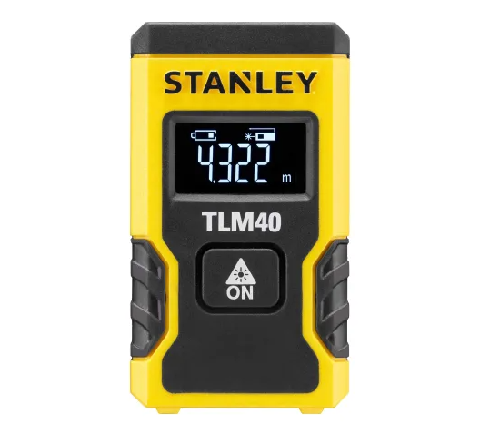 The STANLEY®TLM 40 Laser Distance Measure has a lightweight, compact design and easily fits in a pocket. It features one-button operation for point and click measurement function. Its black screen with white letters provides better visibility in brighter conditions.